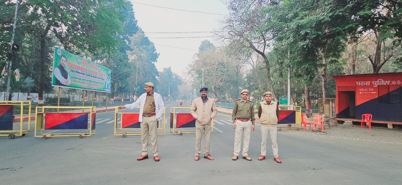 भीड़ से तनाव की आशंका देख तेजस्वी यादव के आवास की ओर आवाजाही पर रोक लगा दी गई है। - फोटो