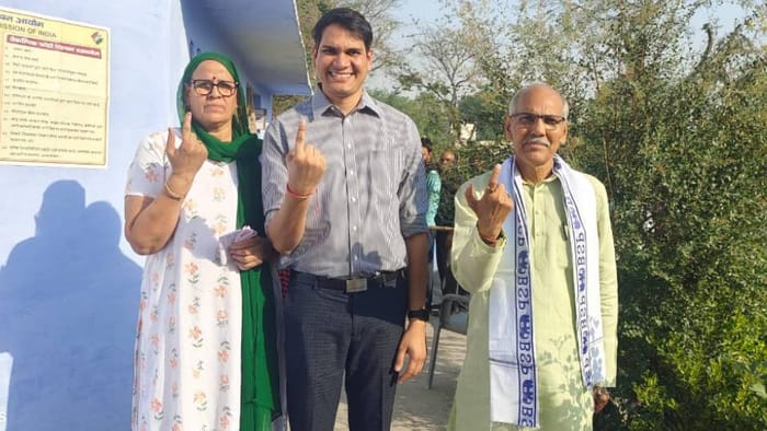 UP Lok Sabha Election Phase 2 Voting :सांसद राजेंद्र अग्रवाल ने परिवार के साथ डाला वोट